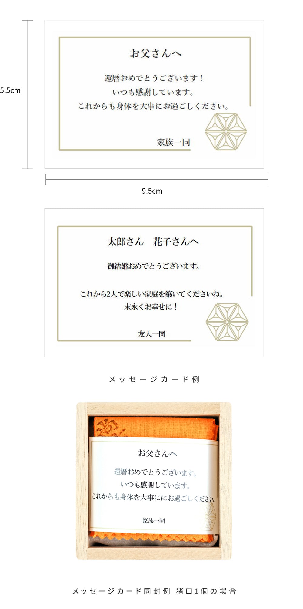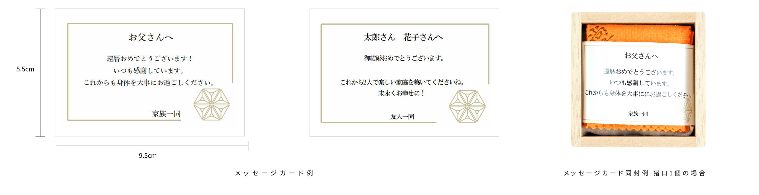 ※上記メッセージカードの作成対応は当社オンラインショップの限定サービスとなっております。