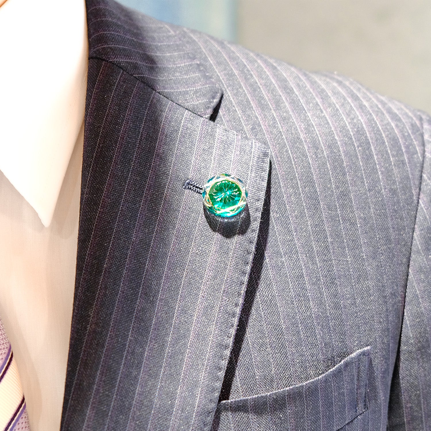 襟元を彩るラペルピン。