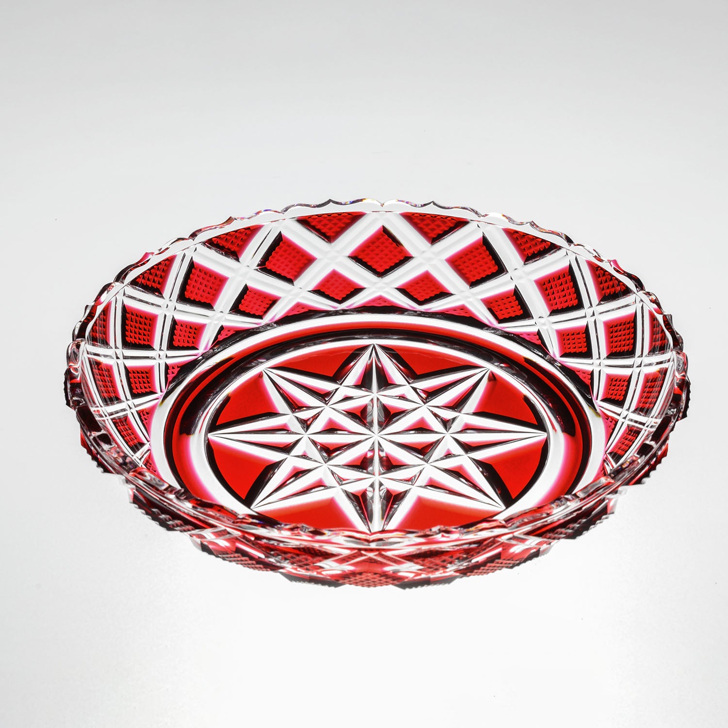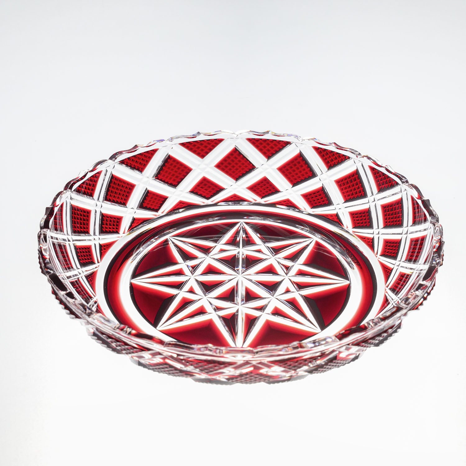 小皿でも使われている魚子文、蜘蛛の巣文をあしらっていますが、格子が二重になっていたり花縁で仕上げたりするなど、細部はより手が込んでいます。