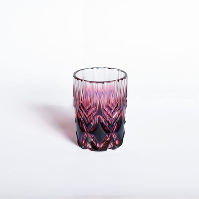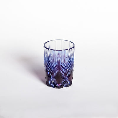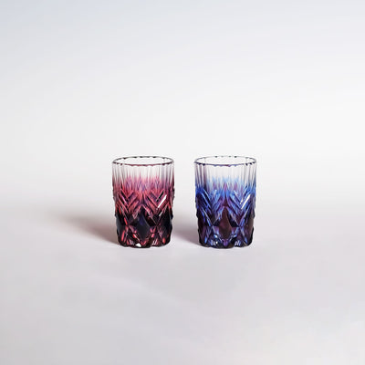 色の層が織りなす模様で、「二色衣」の25年の歩みを表現したショットグラス。