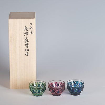 二色酒盃 寿恵瑠(ジュエル) 【蒼黄緑×ルリ金赤×ルリ緑】3点セット