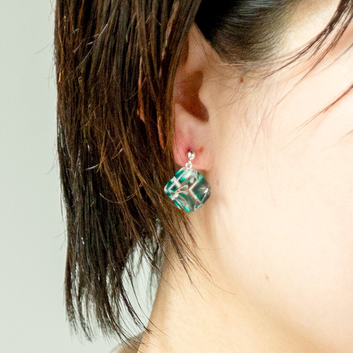 “揺れる”形状の面白さを活かし、色被せされていない面にもカットを施し、映り込みが変化する表情の面白さと奥行き感を楽しんでいただけるようデザインしています。