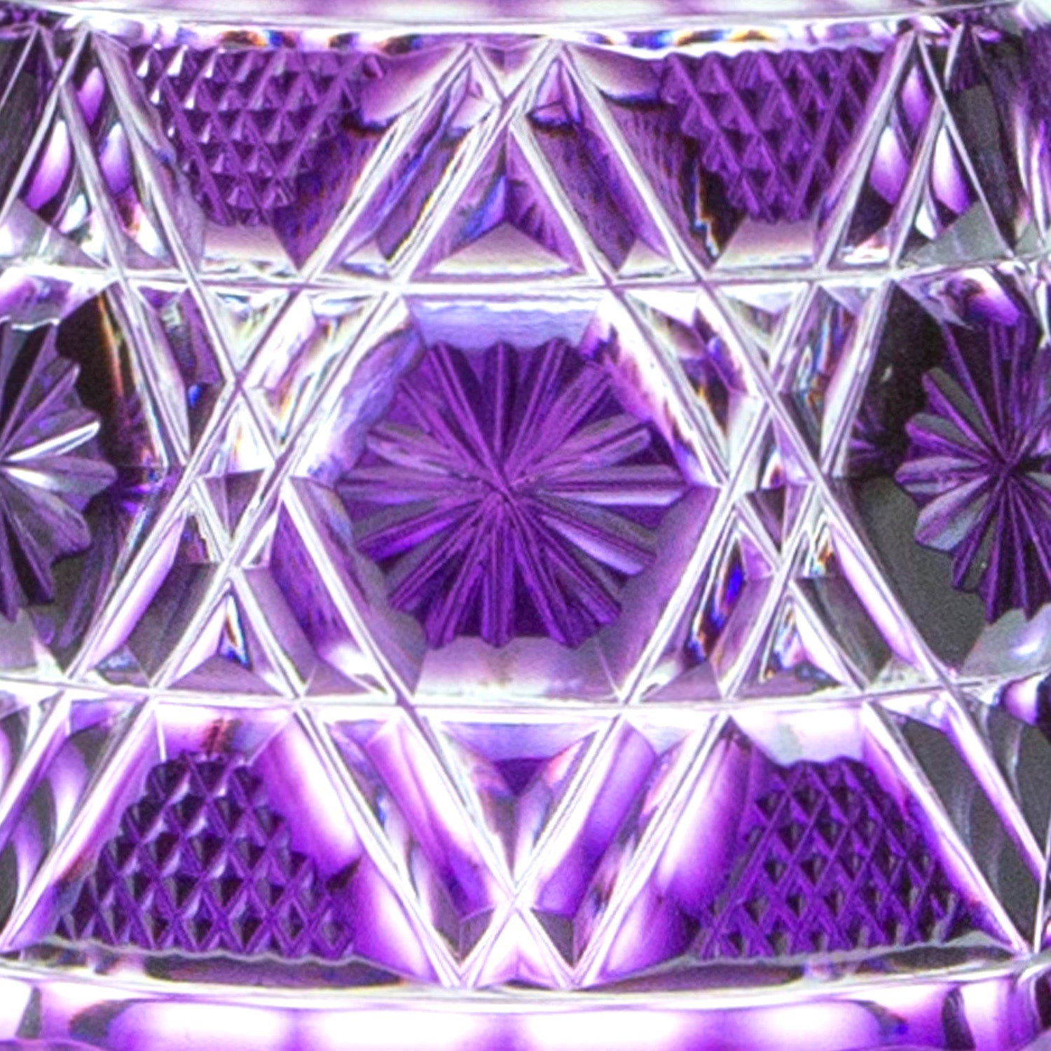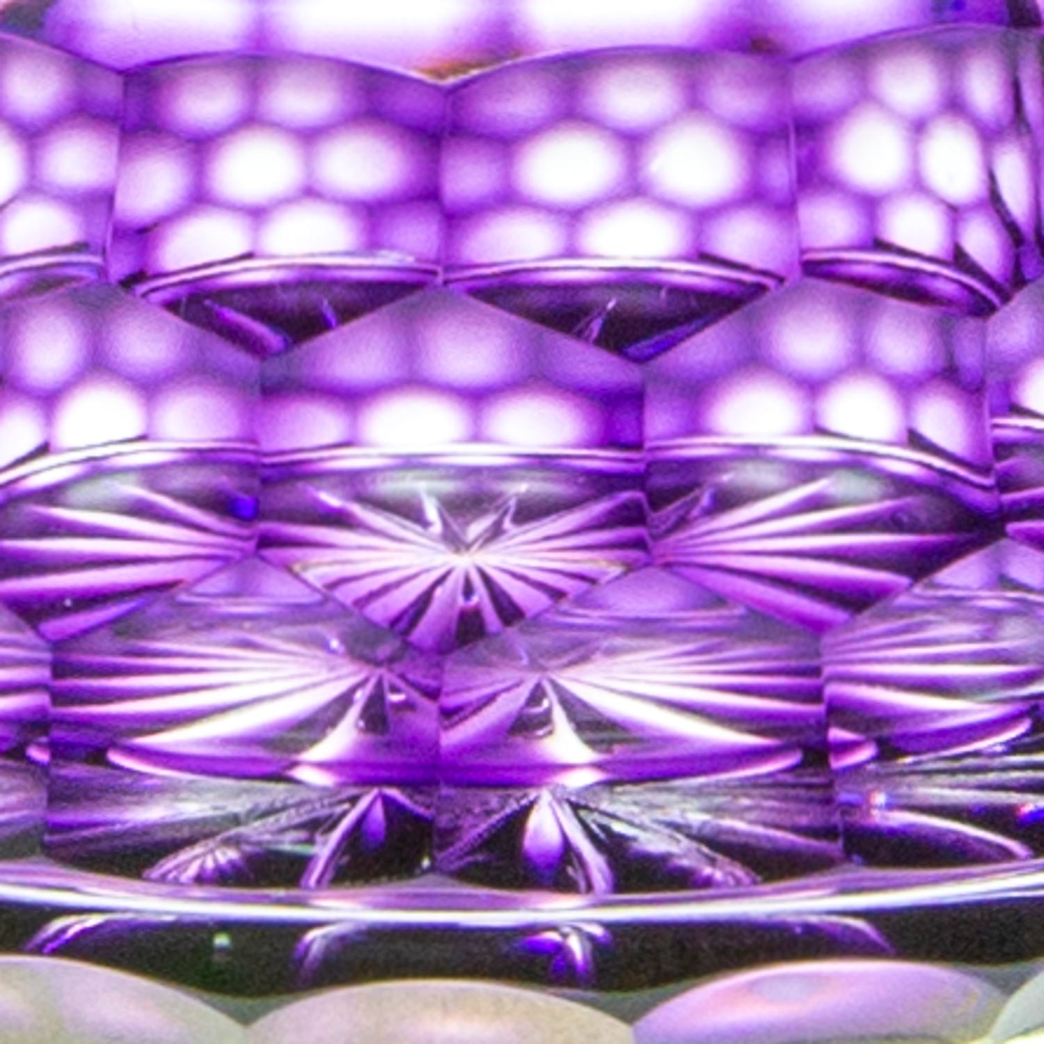 薩摩切子の伝統的な文様を取り入れた、六角籠目に十六菊文と魚子文の連続柄が特徴です。