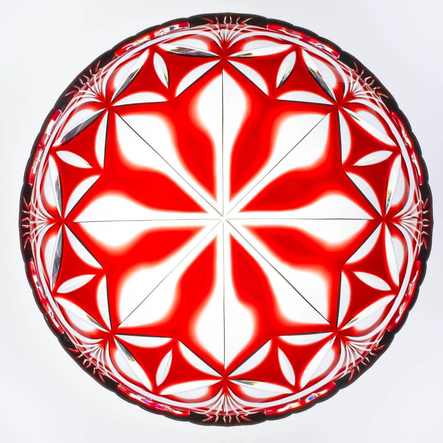 オリジナルは色被せが均一でなかったのか、菊文の透明ガラスと色ガラスの境のラインがぶれていて、炎のように揺らいで“ぼかし”の美しさを逆に際立たせています。