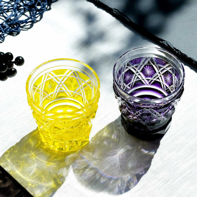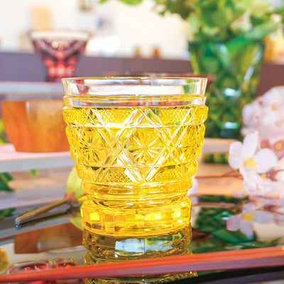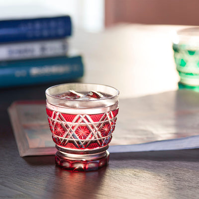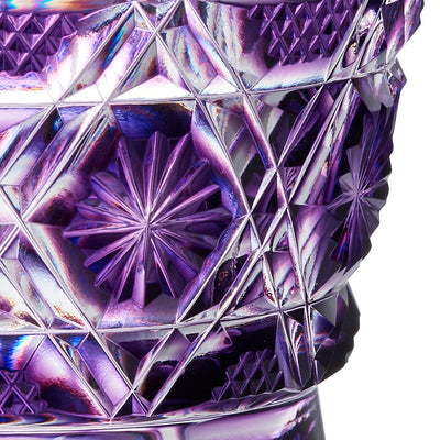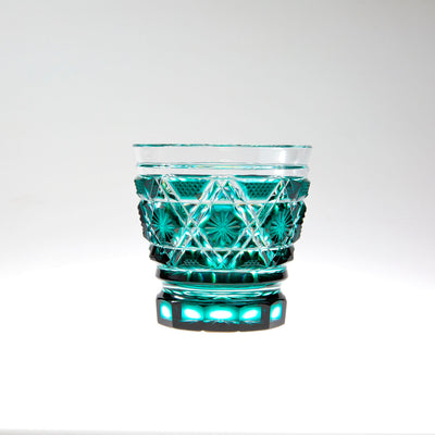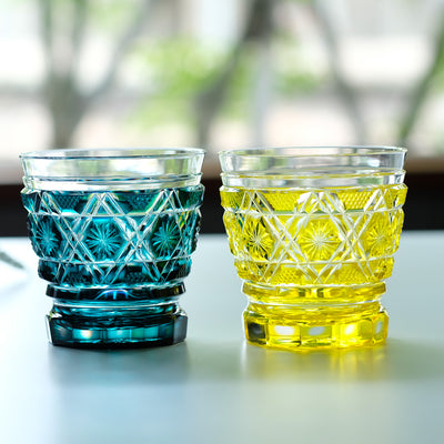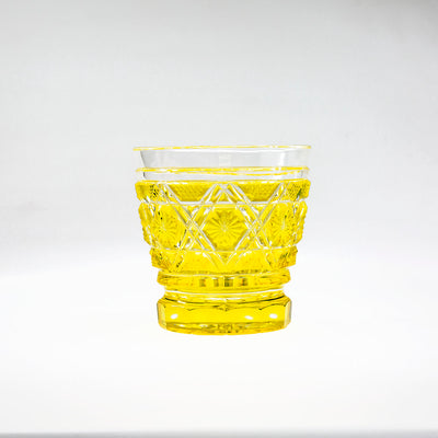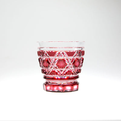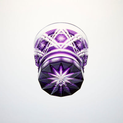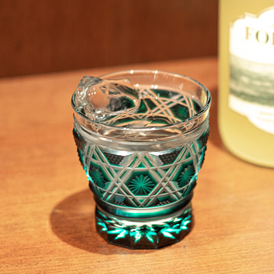 焼酎オンザロックグラスは、細かく華やかなカットに加え、高台の部分にも”ぼかし”が施されている人気のグラスです。