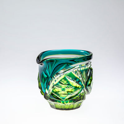 丸みのある宙吹きガラス独特の形状に梅文をあわせることで和のテイストを表現し、曲線を取り入れて柔らかい表情を生み出しています。