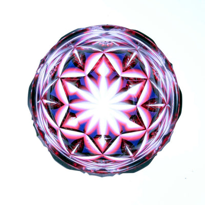 大きな菱繋ぎのカットに大胆な小花柄の削りを入れたデザインは、外側からは幻想的な花のような模様を、内側を覗くとまるで流れ星をとらえた煌めく星のような模様をお楽しみいただけます。