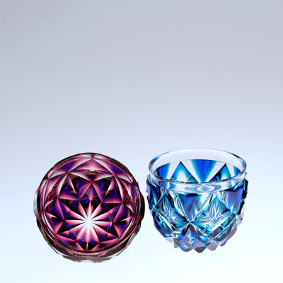 二色猪口(大) cut206 【ルリ金赤×ルリ緑】セット