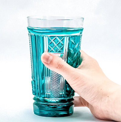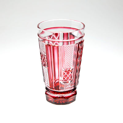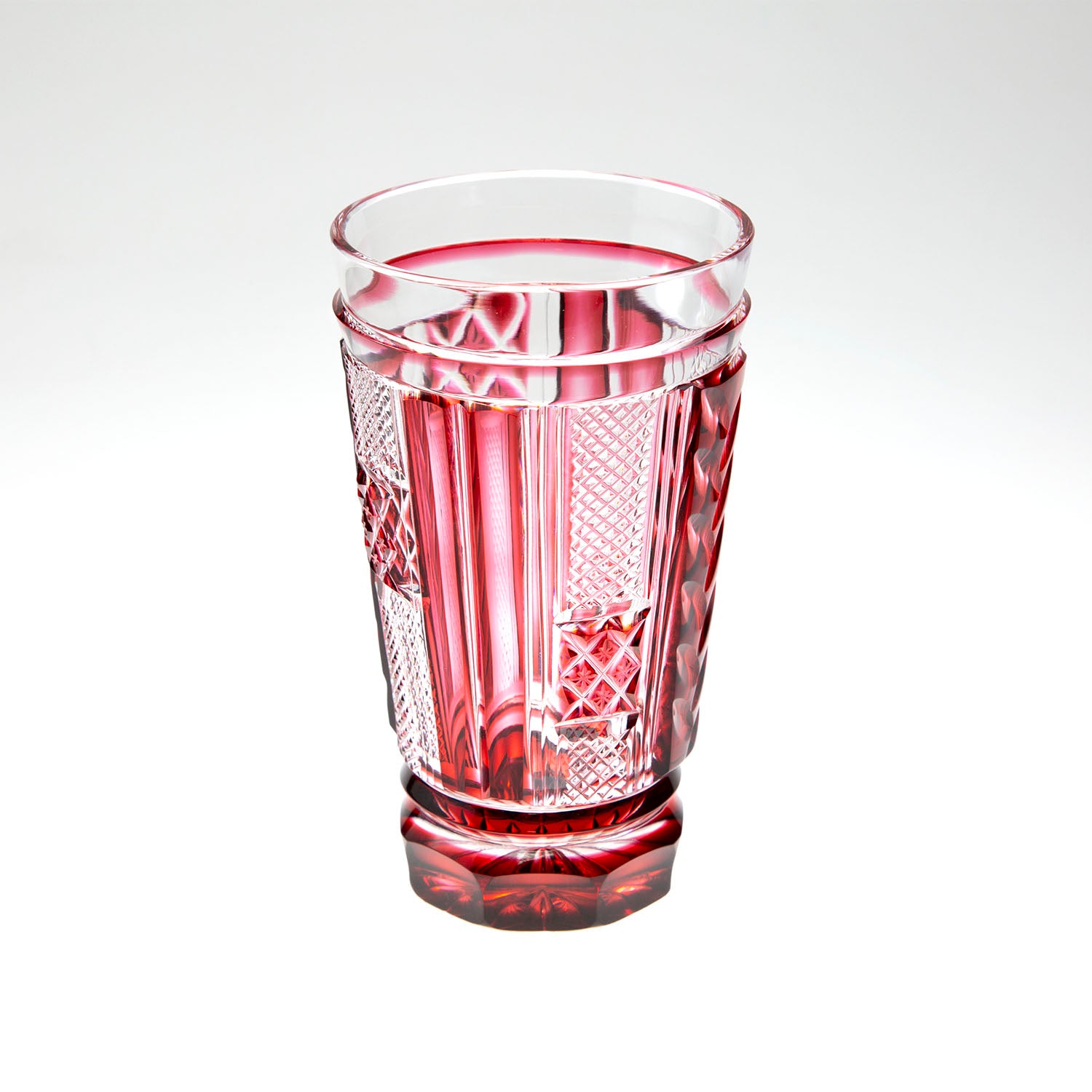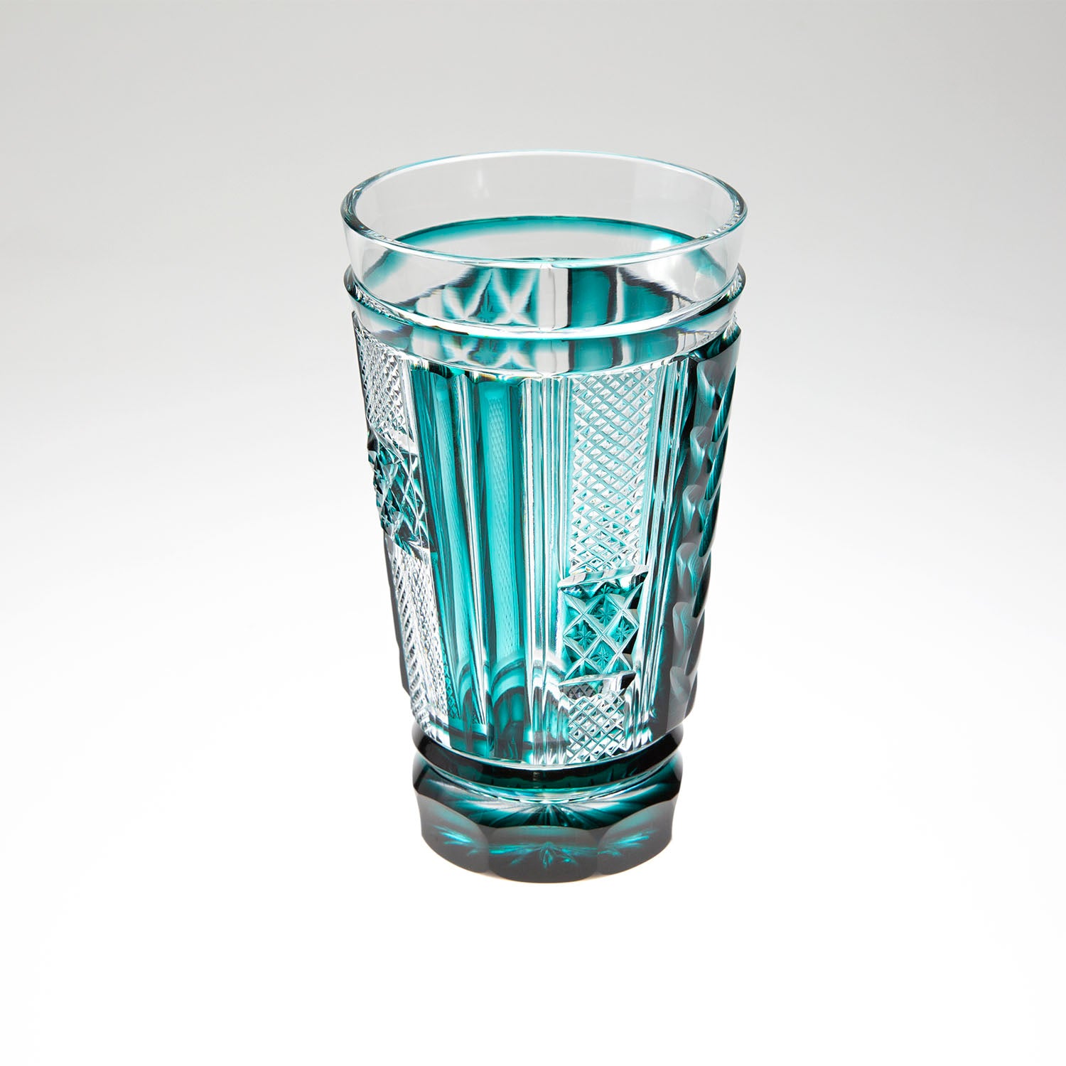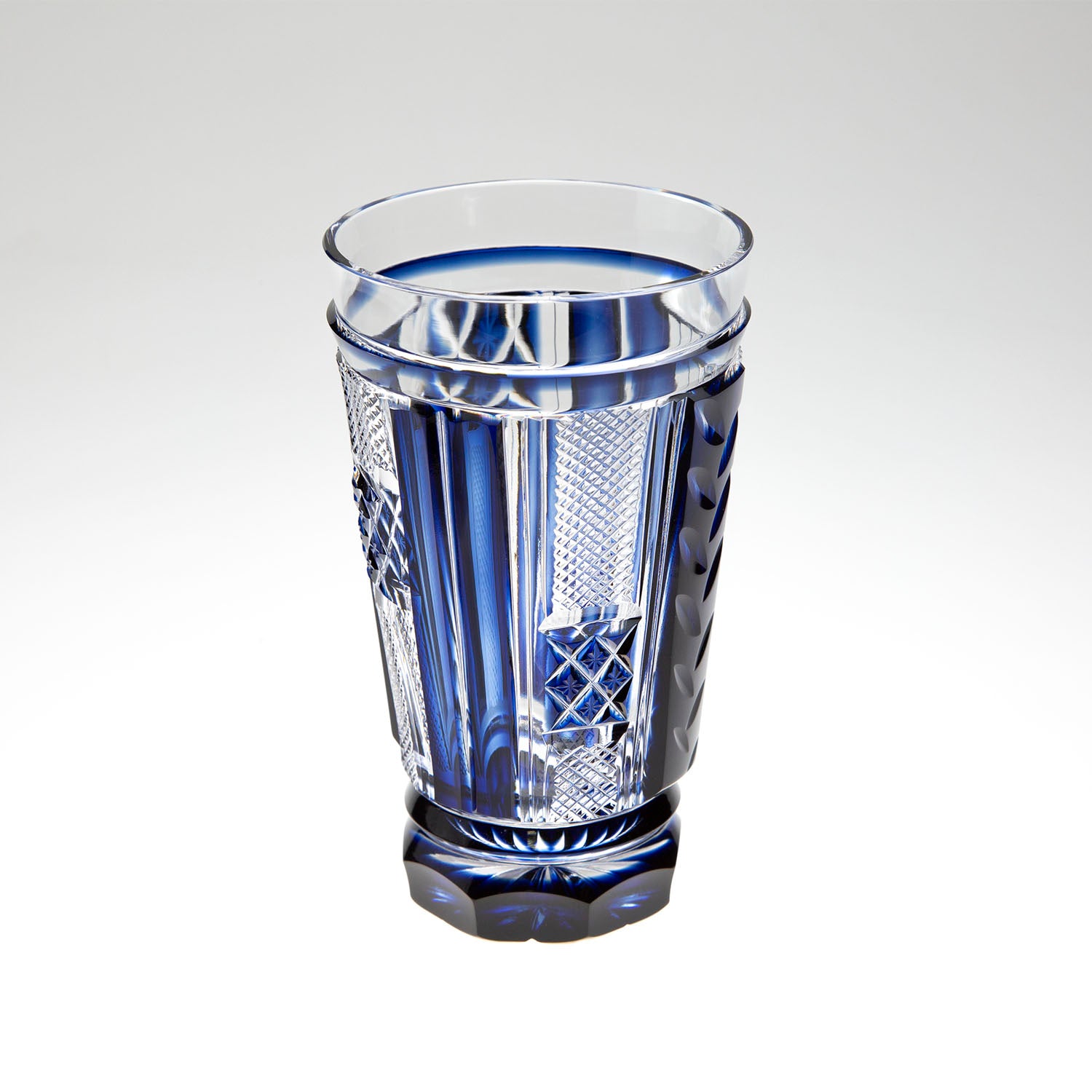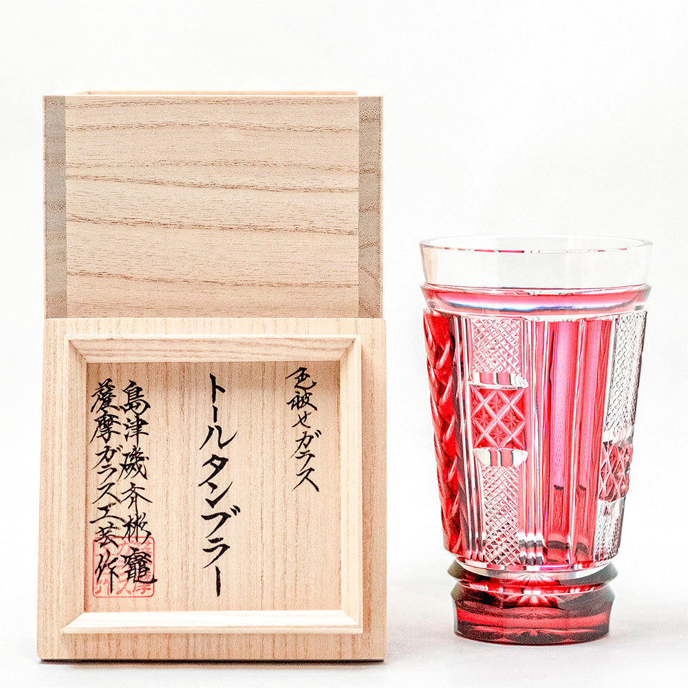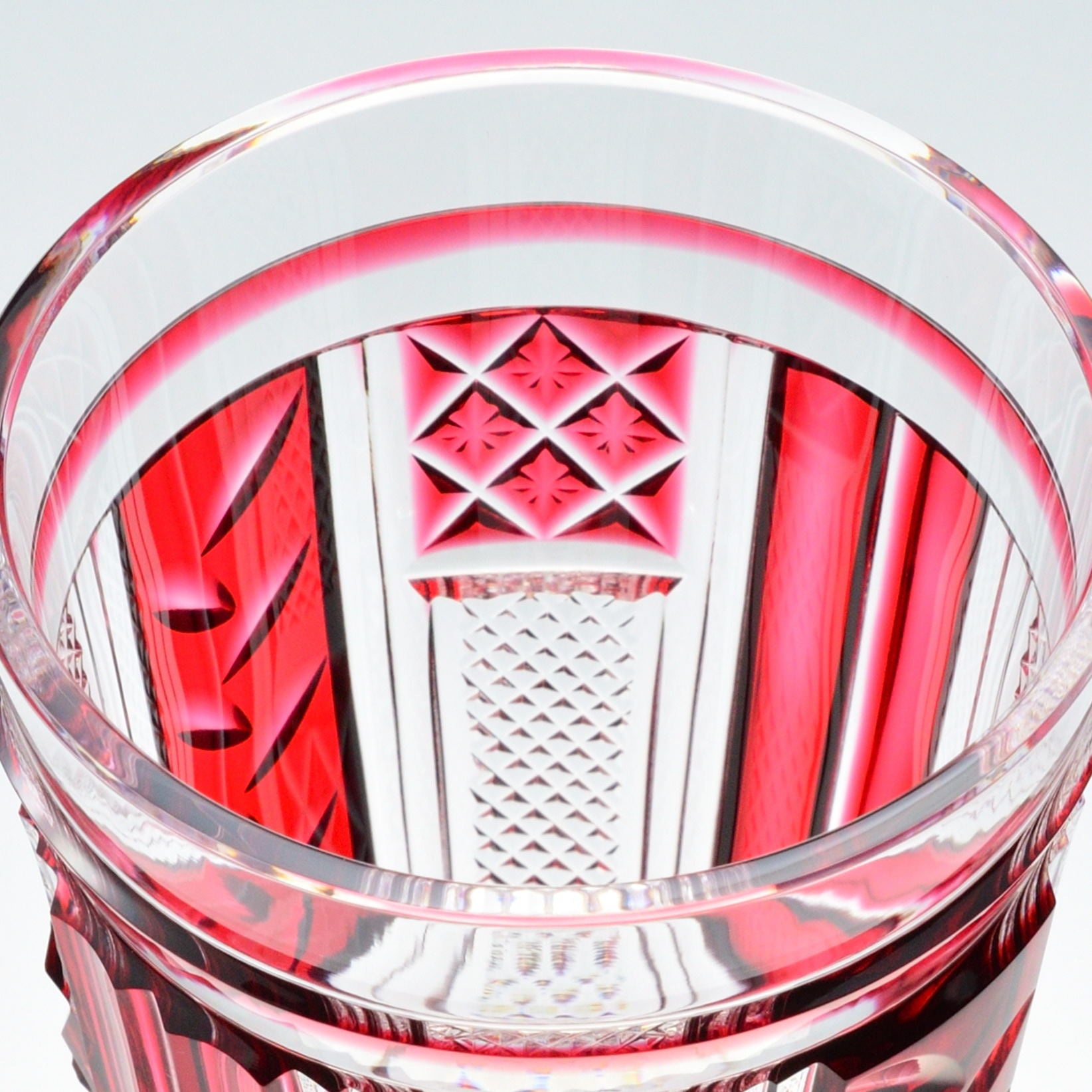 薩摩切子の特徴でもある、”ぼかし”や伝統文様を使いながら、透明ガラスの部分を大胆に見せたデザインです。